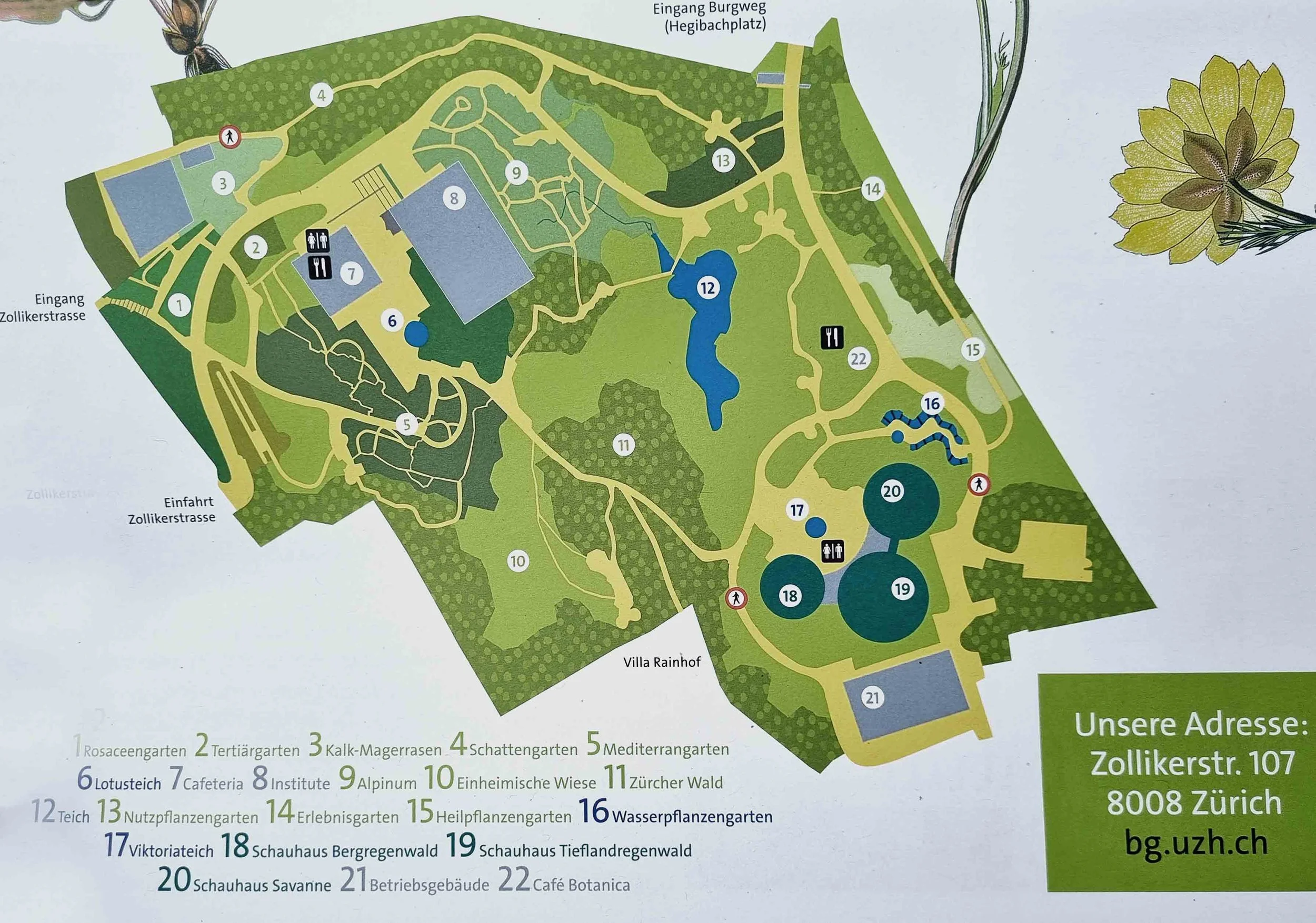 Map of the Zurich Botanical Gardens, Zollikerstrasse