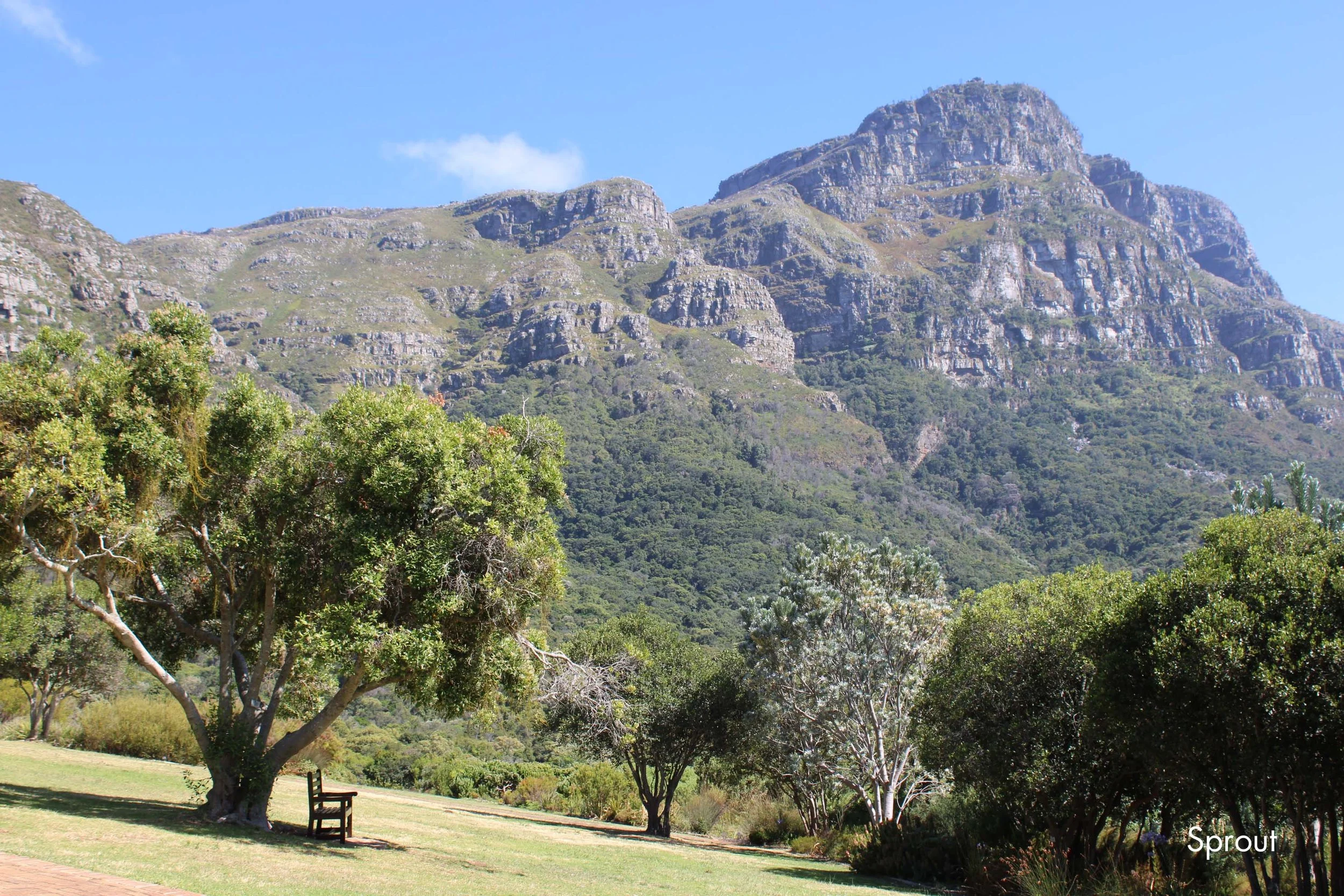 Kirstenbosch sits on the slopes of Table Mountain and has beautiful views of the surrounding mountains